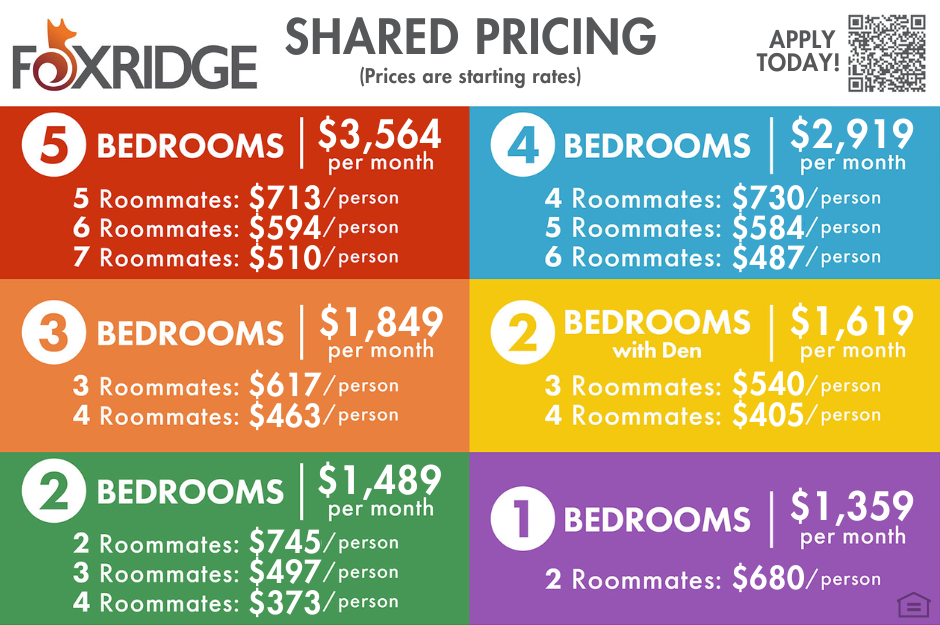 - 2 Roommates: From $680